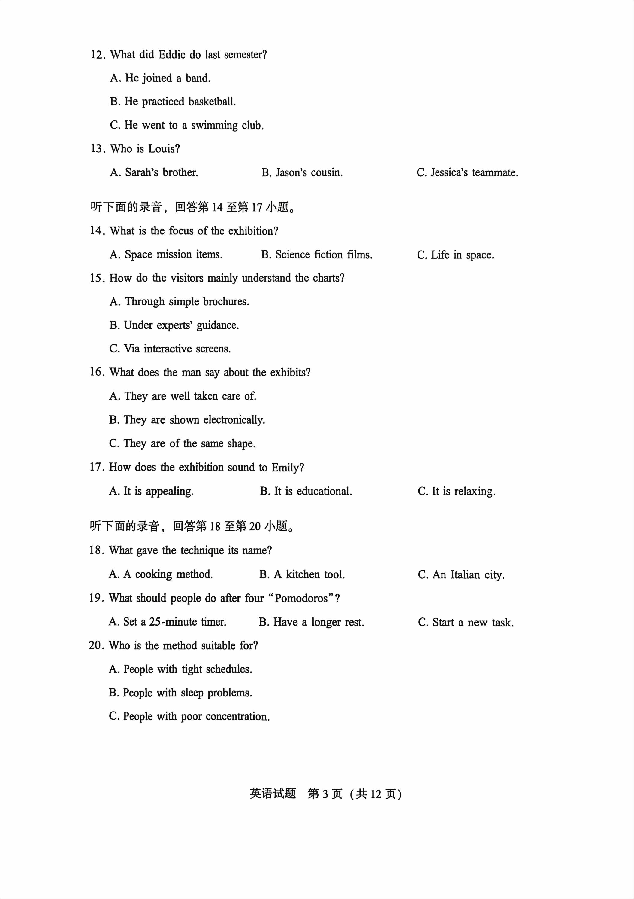 > 试卷内容