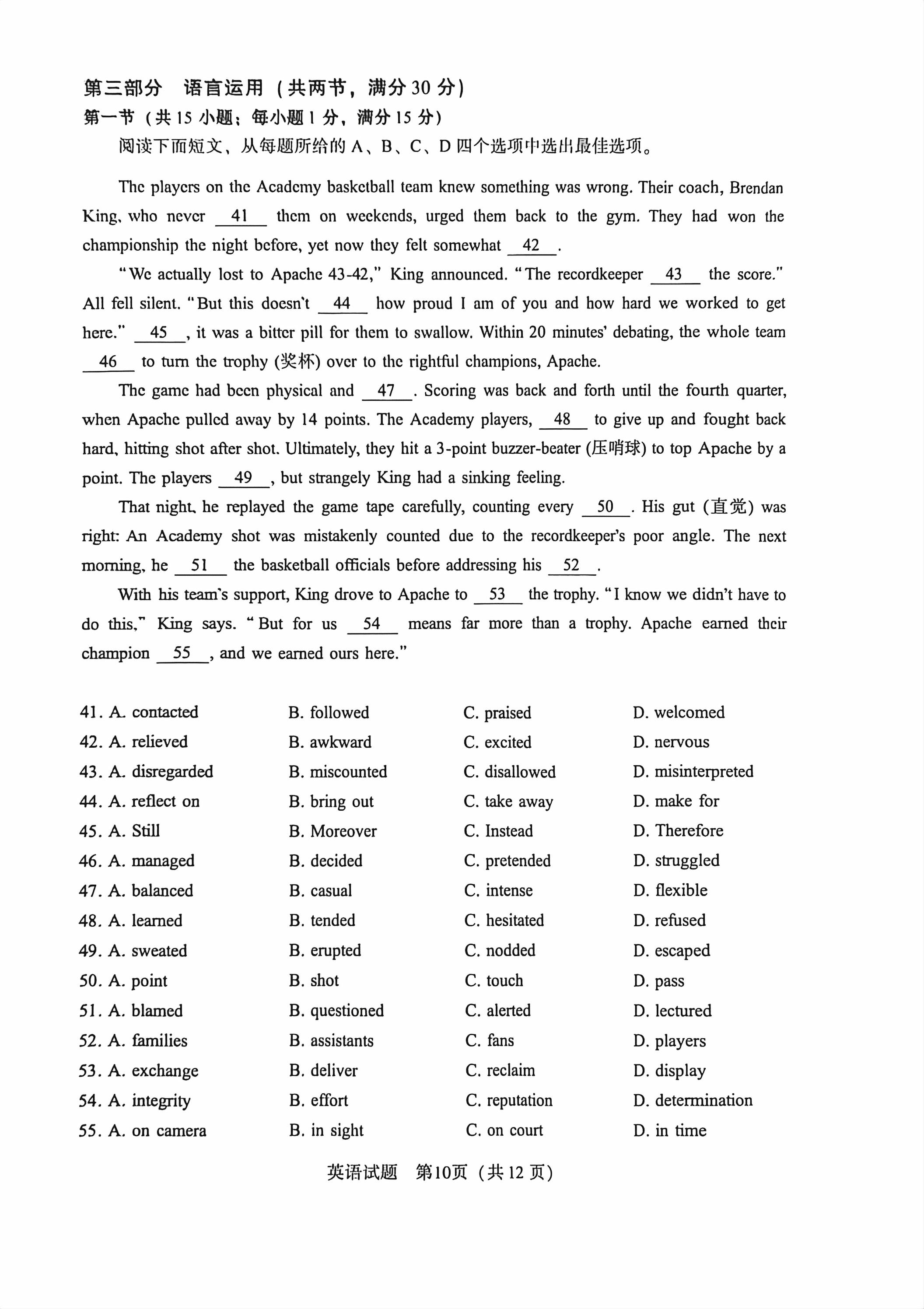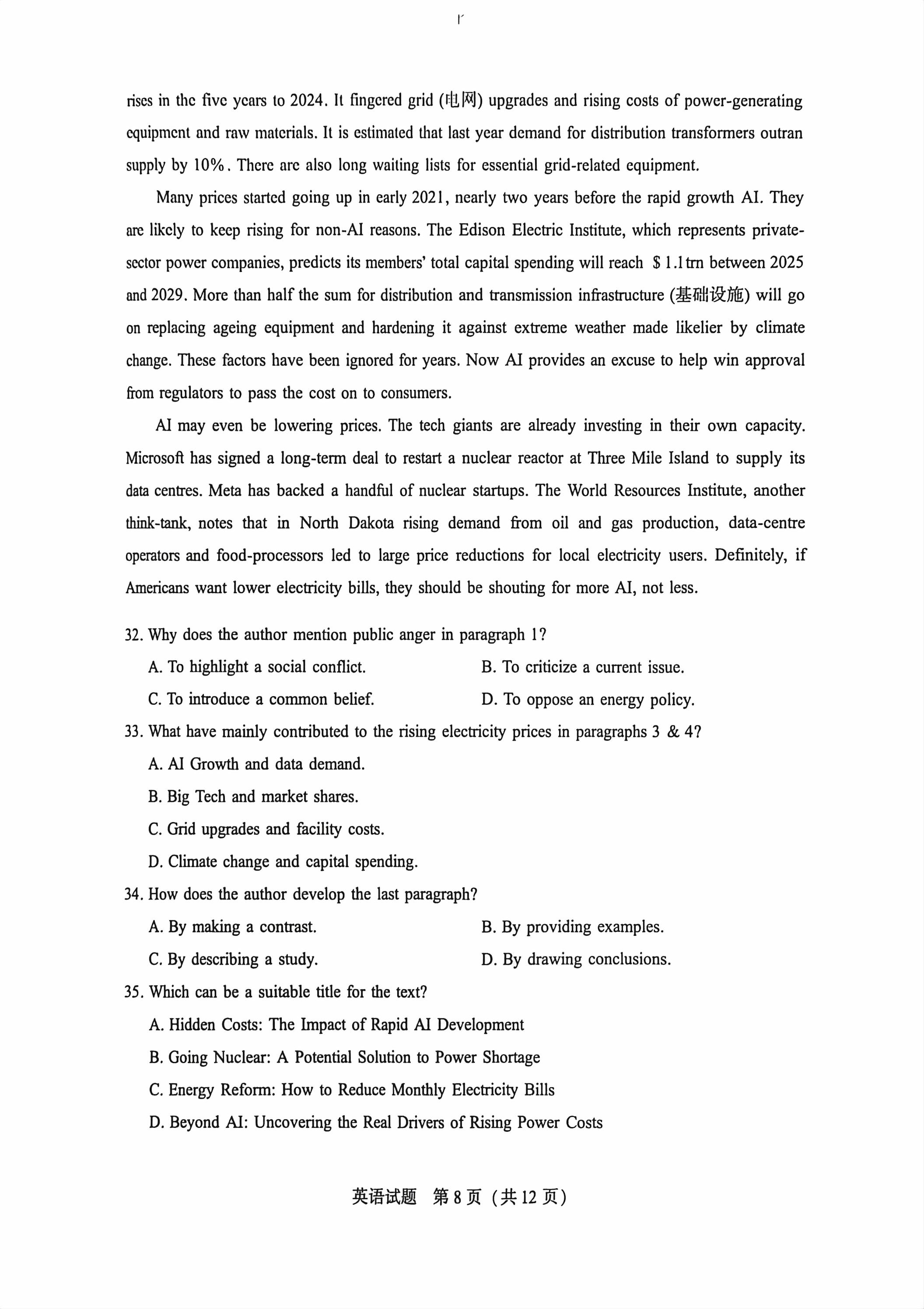 高考试卷