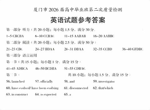 【已更新】2026厦门高三3月二检试题及答案(英语)