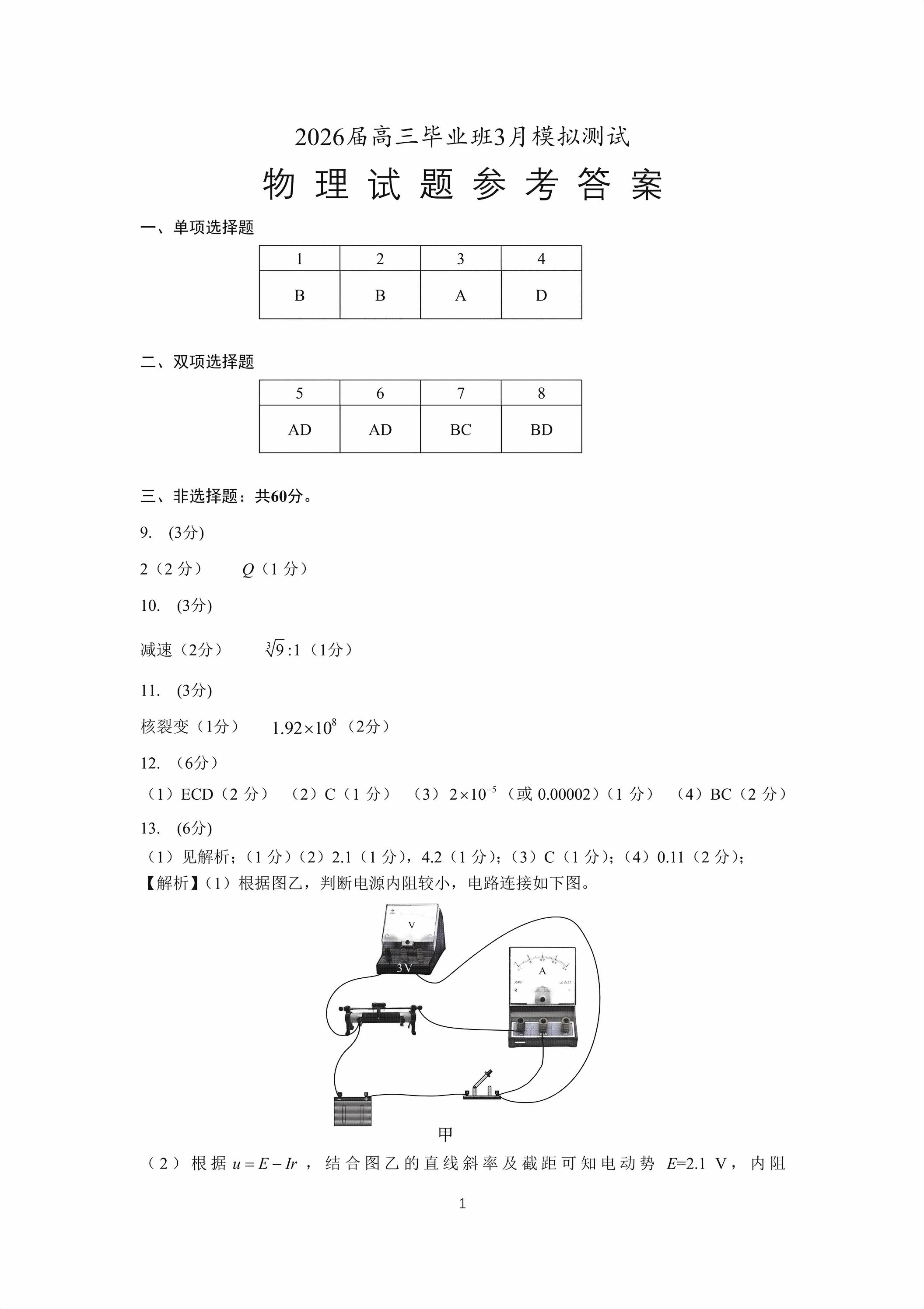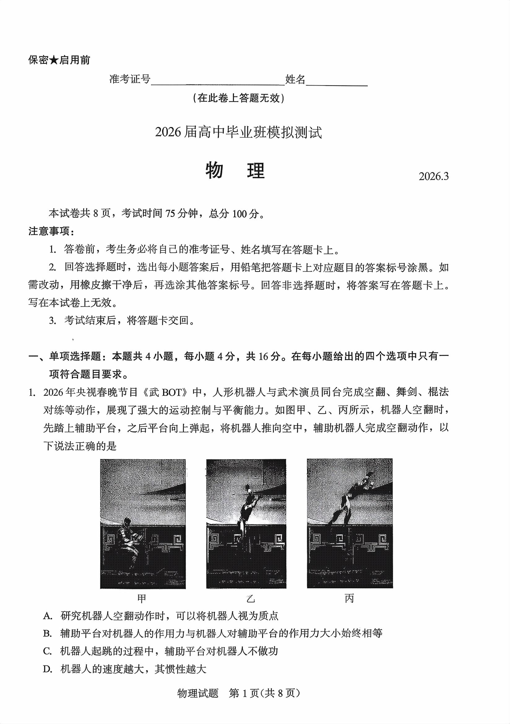 【已更新】2026厦门高三3月二检试题及答案(物理)