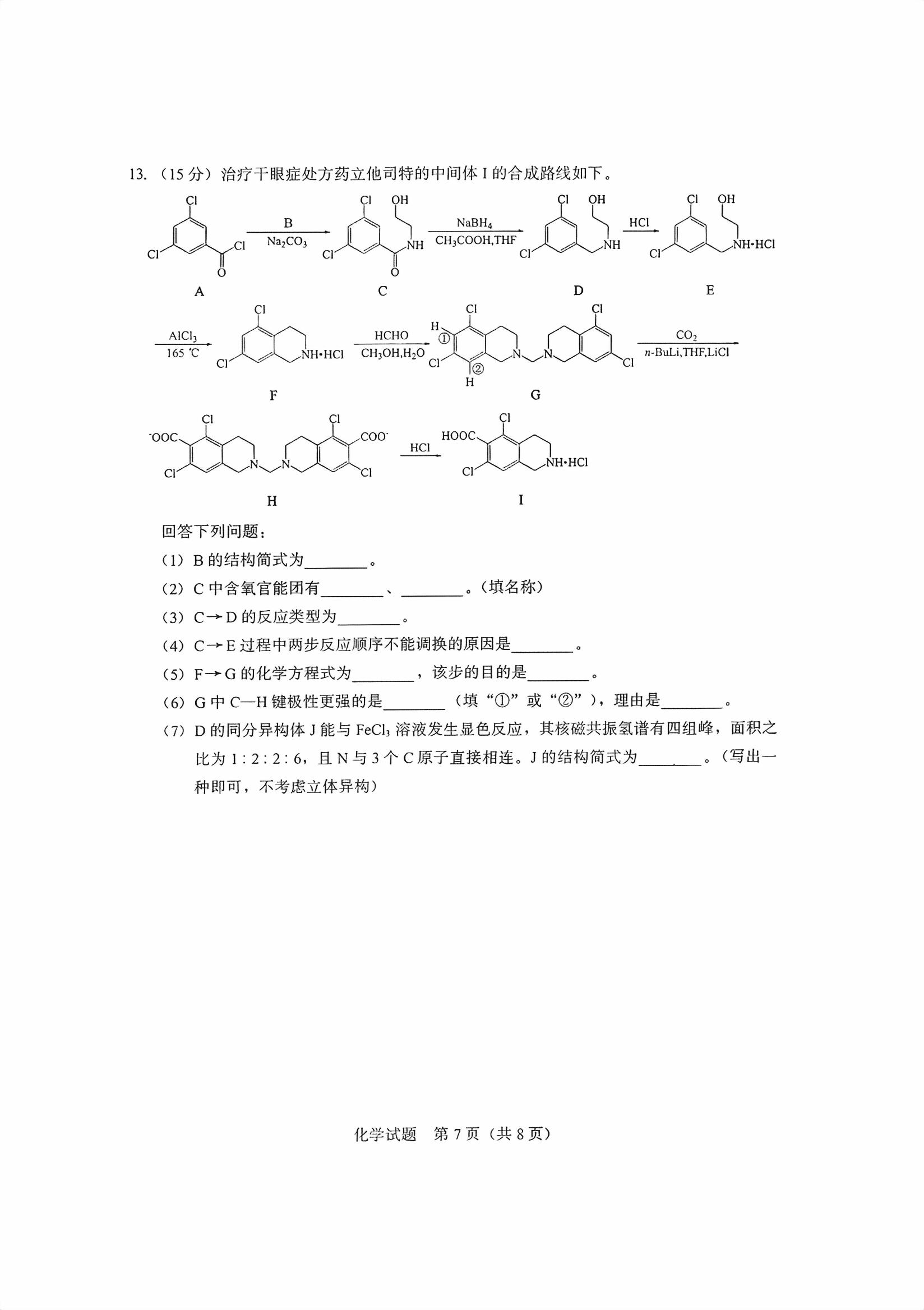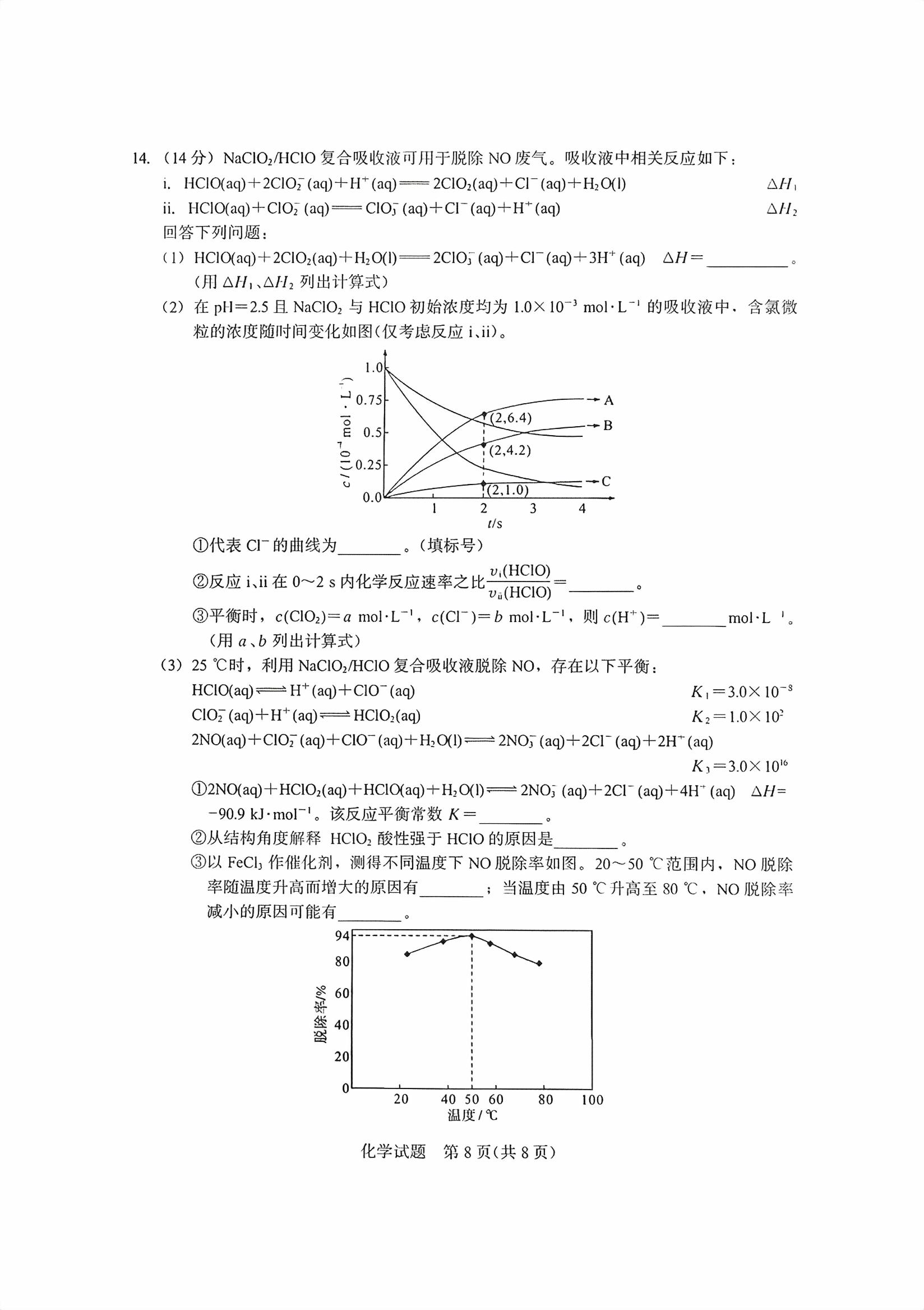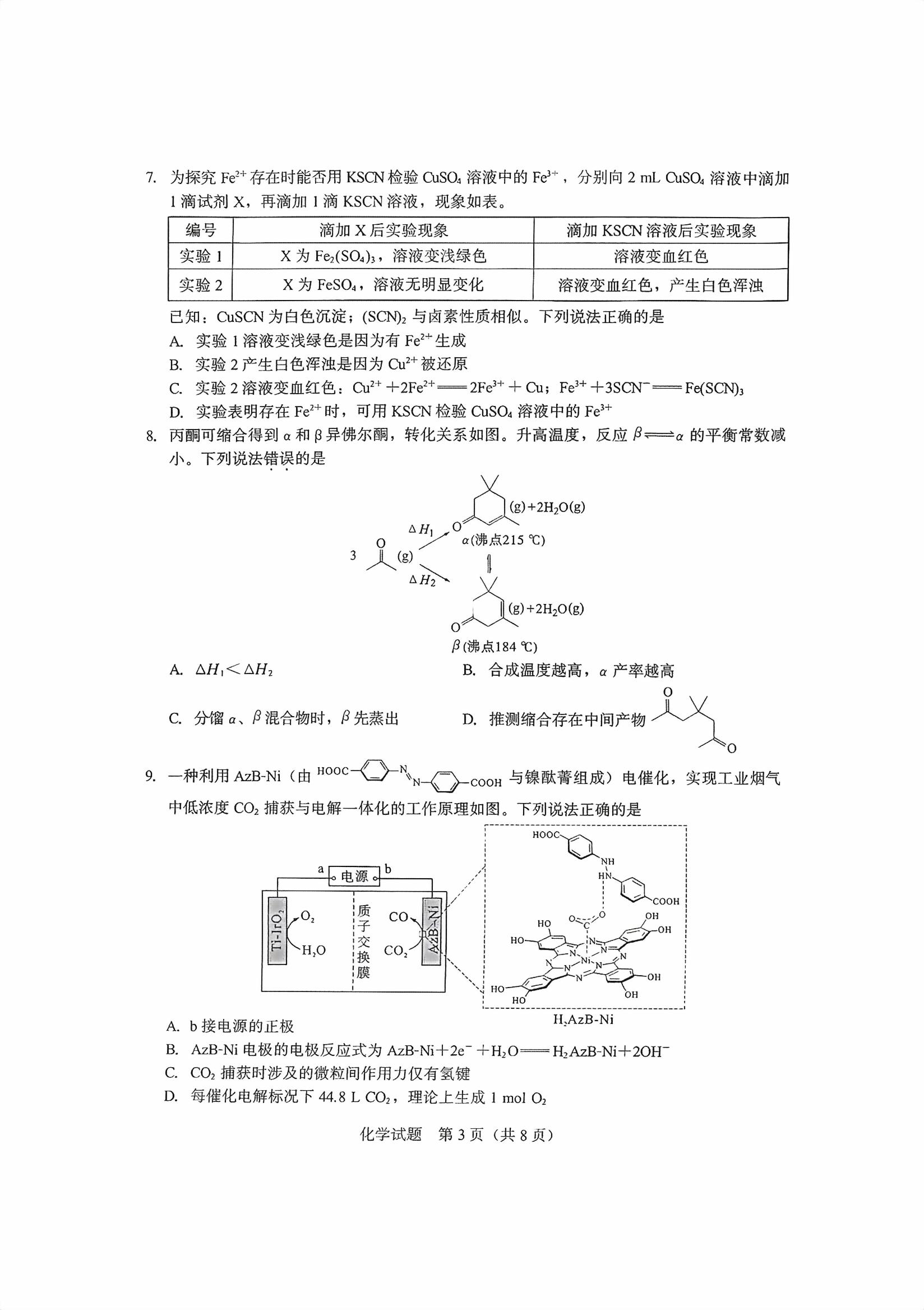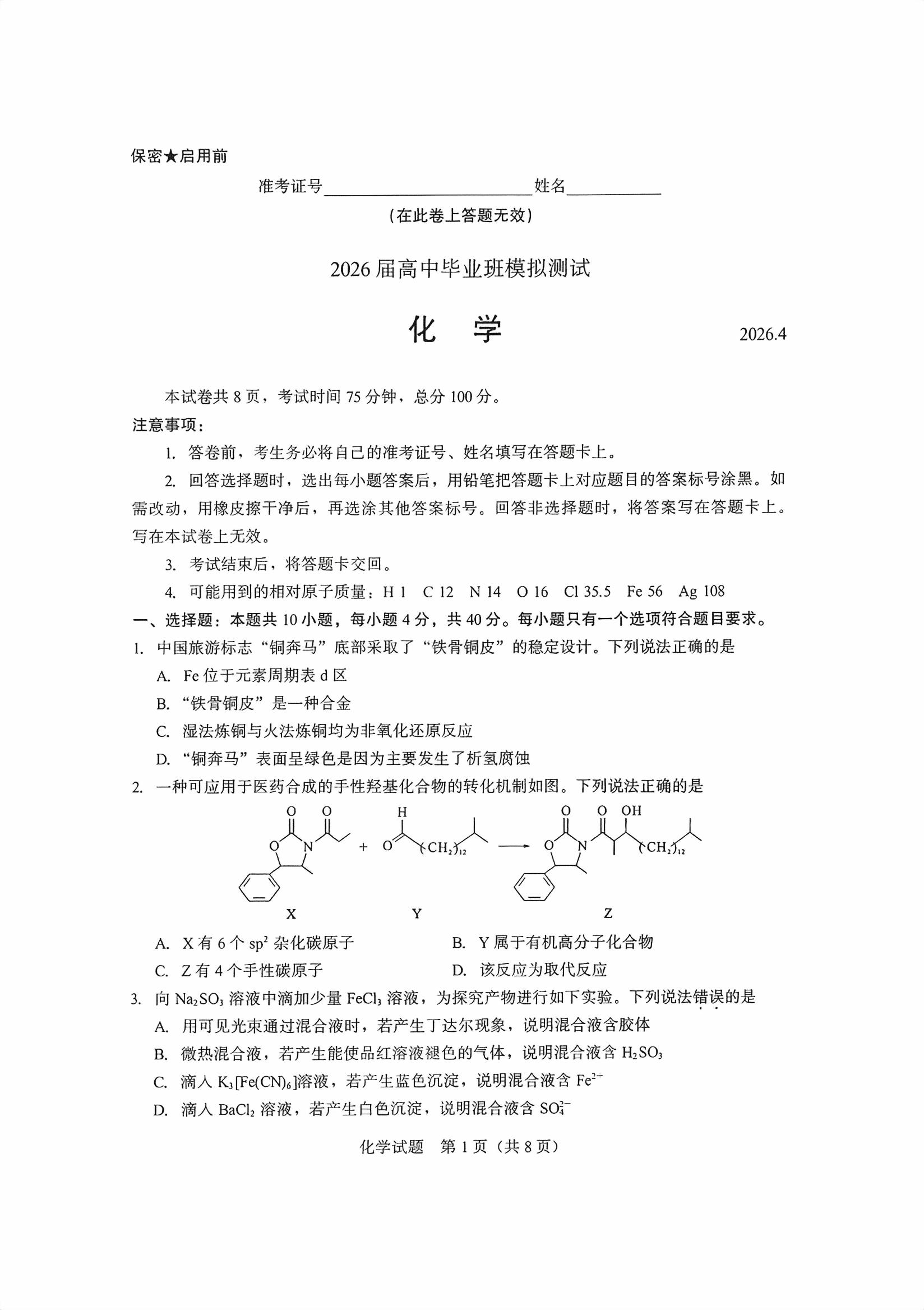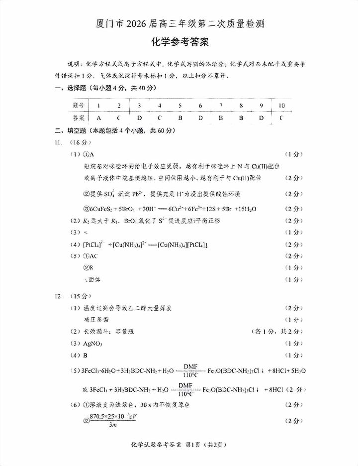 【已更新】2026厦门高三3月二检试题及答案(化学)