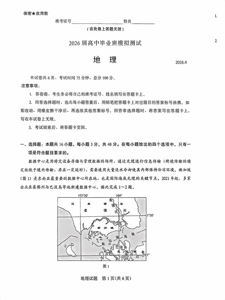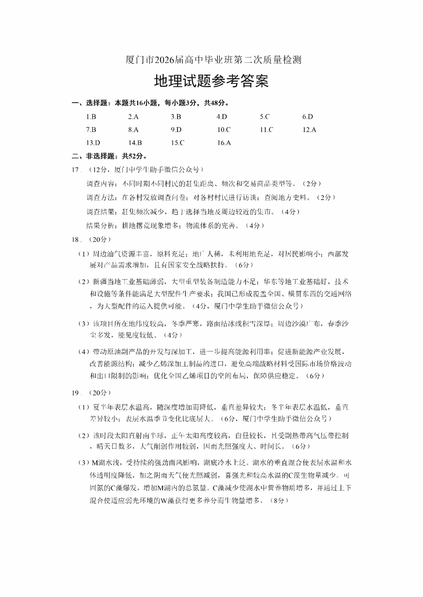 【已更新】2026厦门高三3月二检试题及答案(地理)